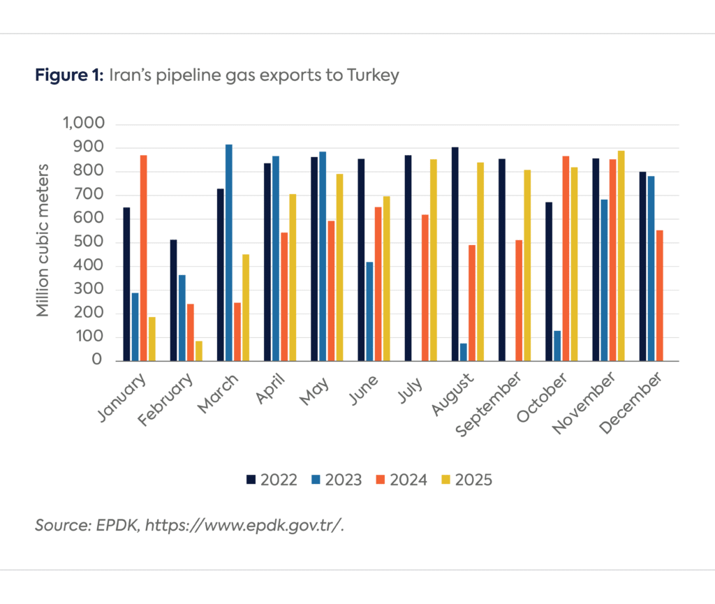 Iran has been exporting gas to Turkey under a 9.6 bcm/y contract, however, actual volumes delivered have often fallen below contracted quantities in recent years (Figure 1). Moreover, the contract is set to expire in July 2026; negotiations are ongoing, and Turkey is planning to seek a waiver from US sanctions.